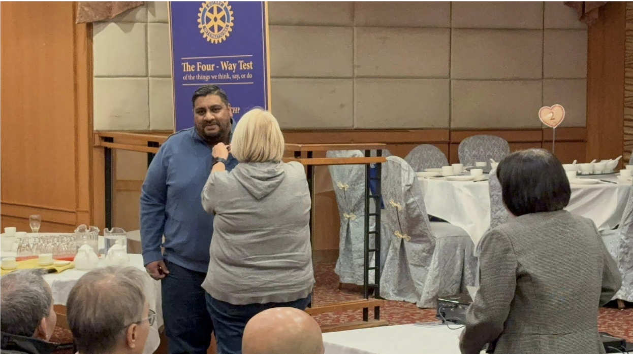 Prior to the presentation were the memorable moments. It was an honor to have District Governor Susanne Zbinden to preside over the ceremony. New member Jeydeep Patel was inducted into our Club. District Governor presented to him a badge and Club President Irene Chu to him a certificate. Club members Javed Khitab and Jonathan Pereiea were awarded the Paul Harris Fellow Blue Stone Lapel Pin. This is a great recognition to Rotarians. They received the Pin individually from District Governor. Congratulations!