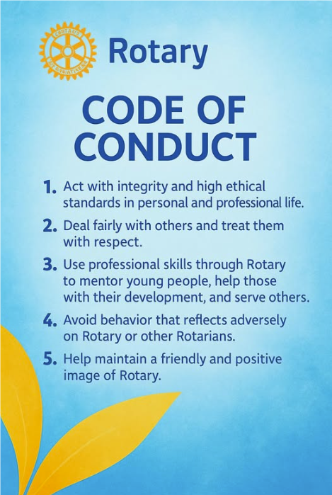The Rotary Code of Conduct defines how we behave and carry out our working in alignment with Rotary values.